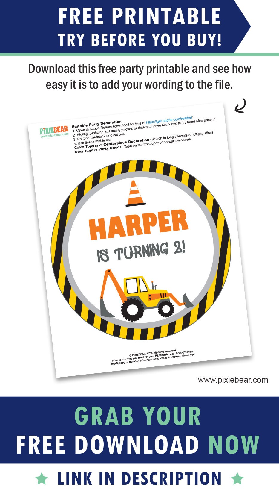 Free construction party themed printables for kids - KiddyCharts There are a few different ideas for you to use within the birthday party setting that just scream construction party to the kids. We have: Truck bowls, Party hats, Cupcake toppers, Cupcake holders, Placemats, Drink banners, Ice cream holders, Birthday banners, Gift tags, Placenames. There are over 19 pages for you to check out and use for your ...